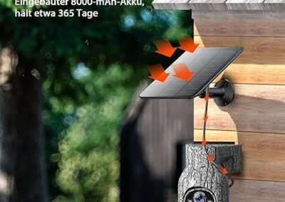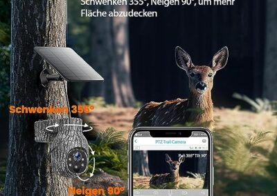- Alimentation continue grâce au panneau solaire et à la batterie intégrée : équipée d’un panneau solaire et d’une batterie intégrée de 8000 mAh de grande capacité dans cette caméra de chasse solaire, cette caméra de chasse 4G fournit une alimentation continue à tout moment et convient partout avec une couverture 4G LTE. En outre, 100 % sans fil, pas besoin de wifi, boîtier étanche IP66 et robuste, idéal pour les zones sauvages, les granges, les fermes, les chalets, les camping-cars, etc
