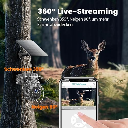 - Pivote à 355° – Vue à 90° et vidéo 2K – Avec la rotation à 355° et l’inclinaison à 90°, vous pouvez facilement obtenir l’angle de vue le plus large dans l’application pour trouver où se trouve la faune, où que vous soyez, tant que vous disposez d’Internet. C’est une grande innovation. HD 2K (2668 x 1440) vraies vidéos vous donnent une image plus vive (Conseils : si l’écran de l’application essaie de charger avec un écran noir après des jours, veuillez charger la carte SIM)