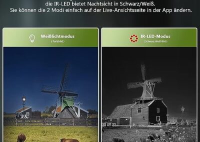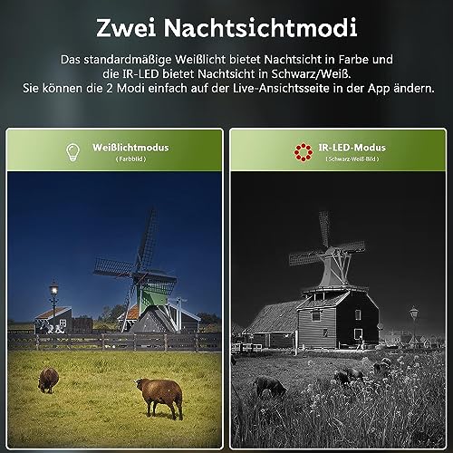 - 【3 modes de vision】Il y a 2 modes de vision nocturne et 1 vue diurne au choix. Si vous choisissez le mode de lumière infrarouge (invisible), vous obtiendrez une image blanche et une image noire. Le mode lumière blanche (visible) enregistre des vidéos de vision nocturne en couleur. La résolution de tous les modes est HD 2K. Conseils : le mode de vision nocturne à lumière blanche a une lumière incandescente qui peut effrayer la faune. Par conséquent, il est recommandé de choisir le mode veilleuse infrarouge lorsque vous surveillez la faune