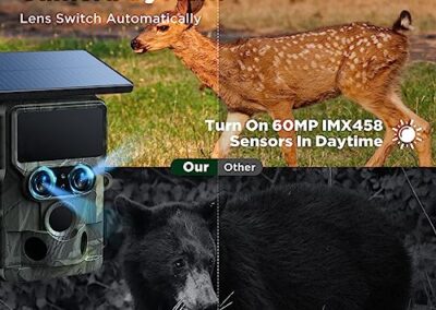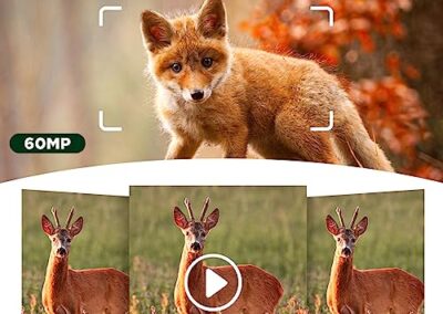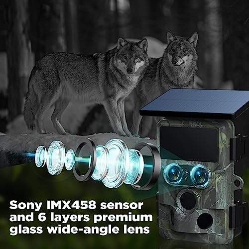 - 【Vidéo Ultra HD 4K & Image Claire 60MP】Équipée de 3 capteurs d’image SONY IMX458 à pixels élevés, d’une puce Novatek 96670 et d’un objectif grand angle en verre de qualité supérieure à 6 couches, vous pouvez obtenir plus de détails sur les animaux sauvages, de jour comme de nuit. La camera de chasse à double objectif prend des images plus claires de 60MP et des vidéos 4K ultra HD plus fluides avec moins de bruits d’image et des détails plus vifs.