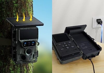 - 【Énergie Solaire & Format de La Vidéo H.265】Equipée d’une alimentation intégrée de 4400mAh, qui peut être alimentée par le panneau solaire situé sur le dessus de la caméra. En même temps, la caméra de chasse WiFi utilise l’enregistrement vidéo avancé H.265 4K 30fps avec lecture du son plus clairement, économisant jusqu’à 90% du stockage de la carte mémoire par rapport aux vidéos MJPG utilisées par d’autres caméras de chasse.