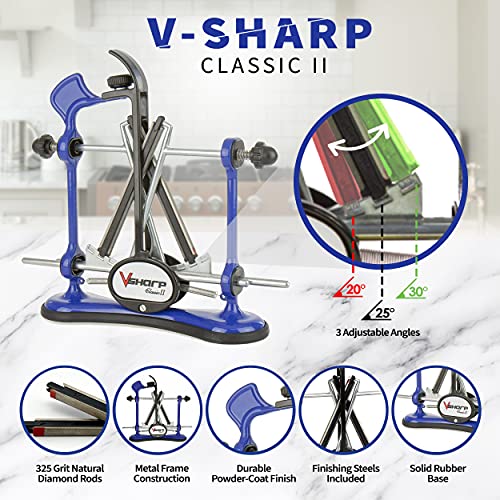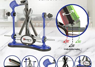 - Caractéristiques : guide réglable ; 3 angles de déclenchement rapide (20, 25, 30) ; curseurs en aluminium léger ; 325 grains double face en cônes rétiniques de diamant et finition acier