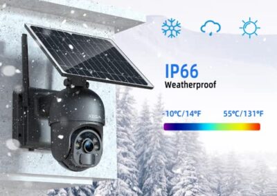 - 【CHARGEZ UNE FOIS, TRAVAILLEZ PENDANT DES MOIS】 Avec Builtin 10000mAh Haute-Capacité & Batterie rechargeable, cette caméra extérieure sans fil peut fonctionner partout sans câble électrique. l’alimentation non-stop du panneau solaire lui offrira une longue durée de travail. Le niveau de la batterie est affiché instantanément sur UBox APP. Cette caméra de sécurité avec sim carte domestique est étanche IP66, Vous n’avez jamais à vous soucier de la pluie ou de la neige l’endommager.