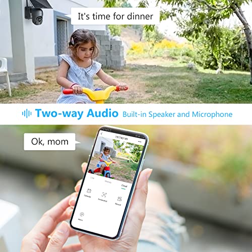 - 【ALERTE INSTANTANÉE DE DÉTECTION DE MOUVEMENT】 Avec un capteur de mouvement PIR sensible plus un algorithme de reconnaissance de niveau de pixel récent, cette caméra de sécurité solaire domestique peut détecter rapidement et précisément tout mouvement de personne ou d’animal, puis la caméra enverra une alerte à votre téléphone immédiatement. Cette caméra de sécurité sans fil a une fonction de conversation bidirectionnelle, vous pouvez communiquer avec le visiteur ou l’intrus.