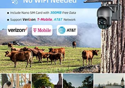 - 【CONNEXION SANS FIL 3G/4G】 Cette caméra de sécurité extérieure sans fil peut fonctionner là où le WIFI n’est pas accessible avec une couverture 3G/4G LTE. Une carte SIM NANO d’essai de 300 Mo sera fournie dans le paquet, c’est pratique pour votre installation instantanée. 100% sans fil et pas besoin de wifi. Vous pouvez utiliser les cartes SIM de Deutsche, Telekom, AG, Vodafone, O2, SFR, Orange, Bouygues, TIM, etc.