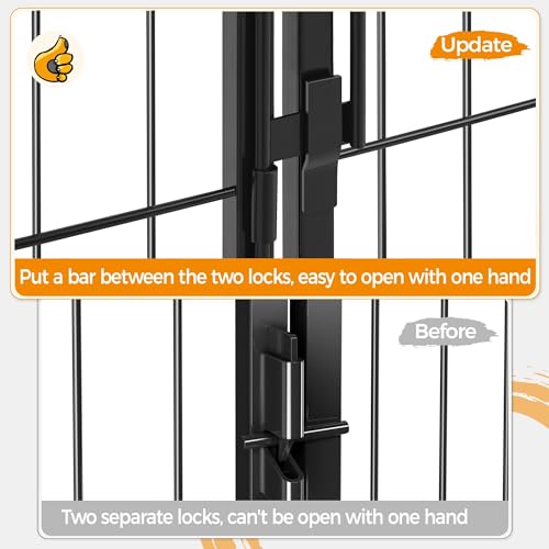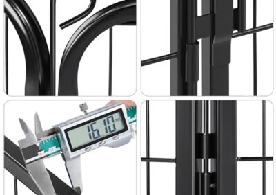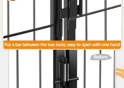 - Sûr et sécurisé : Grâce aux espacements appropriés des barres, cet enclos d’exercice laisse vos animaux de compagnie rester en sécurité. Son loquet se verrouille automatiquement lorsque vous la porte. Les bords arrondis protègent les animaux contre les blessures sans abîmer les parquets. Les tiges métalliques relient fermement les panneaux, pouvant fixer le parc dans la prairie ou dans un sol extérieur.