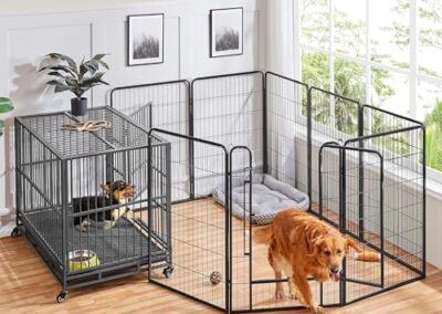 - Pour les grands animaux : 100 cm de haut, ce parc pour animaux de compagnie est un accessoire idéal pour gros animaux tels que bergers, golden retriever, labrador, etc. Vous pouvez ajouter un tapis dedans pour un confort optimal.