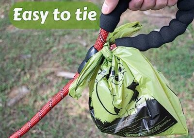 - Quelle est la facilité d’utilisation? Vous pouvez facilement sortir les sacs à poignées du distributeur de boîtes, et les attacher facilement après avoir ramassé les déjections canines.